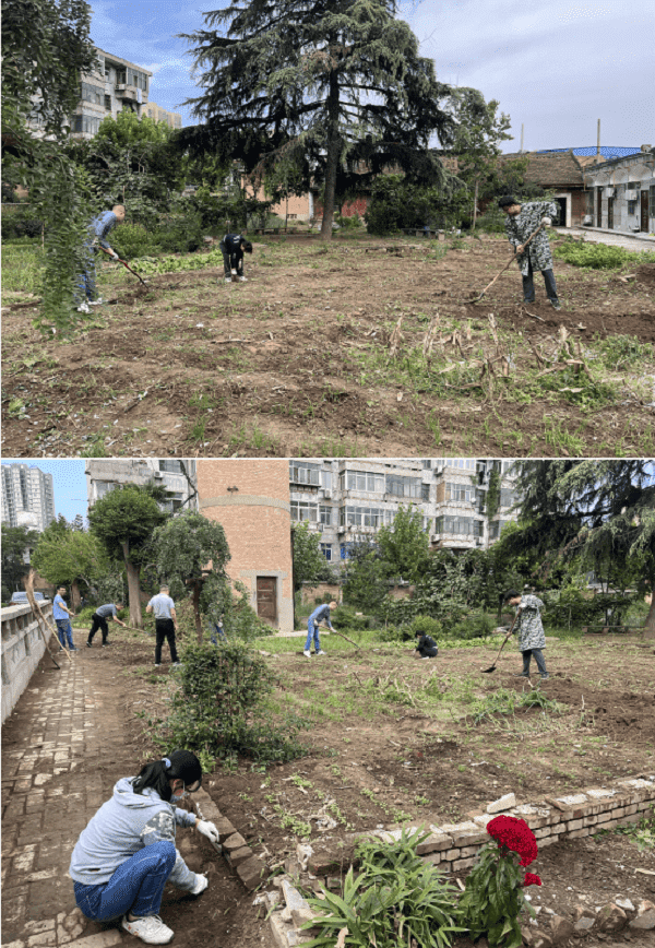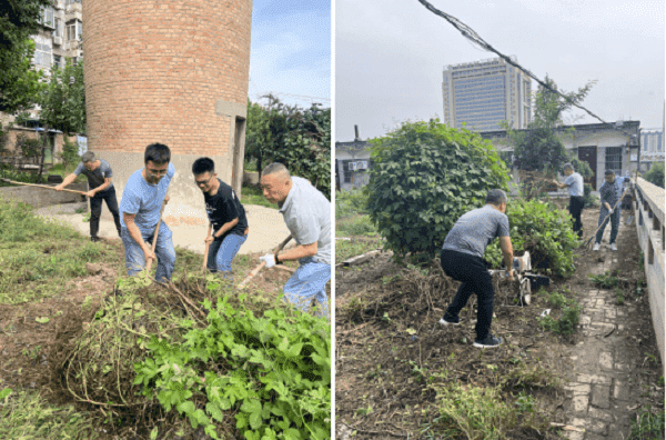 活動中,黨員職工紛紛拿起鋤頭、鐵鍬等工具,撿拾、清理三臺科研試驗田兩邊的垃圾、雜草,并對單身宿舍屋前雜草進行了清理,經(jīng)過2個多小時的分工協(xié)作,環(huán)境衛(wèi)生煥然一新。