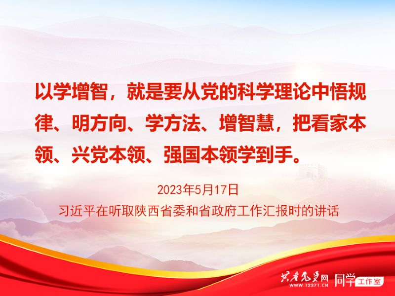 總書記指出,以學(xué)增智,就是要從黨的科學(xué)理論中悟規(guī)律、明方向、學(xué)方法、增智慧,把看家本領(lǐng)、興黨本領(lǐng)、強(qiáng)國(guó)本領(lǐng)學(xué)到手。