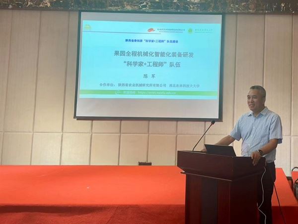 大會(huì)還進(jìn)行了工程中心技術(shù)領(lǐng)域承擔(dān)的人才建設(shè)、重點(diǎn)科研項(xiàng)目啟動(dòng)暨部署會(huì),會(huì)上西北農(nóng)林科技大學(xué)機(jī)械與電子工程學(xué)院陳軍教授介紹秦創(chuàng)原“果園全程機(jī)械化智能化裝備‘科學(xué)家+工程師’隊(duì)伍”工作進(jìn)展”;陜西科技大學(xué)食品科學(xué)與工程學(xué)院李道明副教授介紹“特色油料加工關(guān)鍵技術(shù)及裝備開發(fā)與示范”項(xiàng)目情況;西北農(nóng)林科技大學(xué)機(jī)械與電子工程學(xué)院石復(fù)習(xí)副教授介紹“果樹花期預(yù)測(cè)與疏花授粉智能作業(yè)關(guān)鍵技術(shù)集成與示范”項(xiàng)目情況。各位教授專家研討交流有利于各單位在管理服務(wù)、技術(shù)推廣、科研創(chuàng)新等方面互相借鑒、優(yōu)勢(shì)互補(bǔ),對(duì)推動(dòng)我省林果特色產(chǎn)業(yè)裝備協(xié)同創(chuàng)新融合發(fā)展具有重要意義。