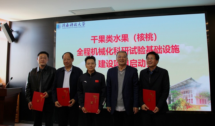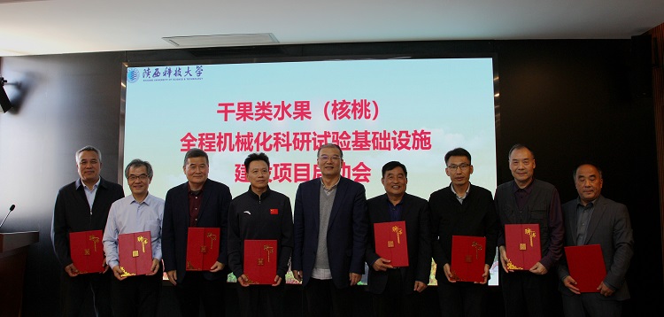 10月22日下午,干果類水果(核桃)全程機(jī)械化科研試驗(yàn)基礎(chǔ)設(shè)施建設(shè)項(xiàng)目啟動會在陜西科技大學(xué)逸夫樓舉行。陜西省發(fā)展和改革委員會農(nóng)村經(jīng)濟(jì)處副處長寇菲、陜西省農(nóng)業(yè)農(nóng)村廳農(nóng)業(yè)機(jī)械化管理處副處長高鵬、陜西省教育廳科學(xué)技術(shù)處二級調(diào)研員邢曉靜、陜西科技大學(xué)校長李志健出席了此次啟動會,會議由陜西科技大學(xué)副校長陸趙情主持。