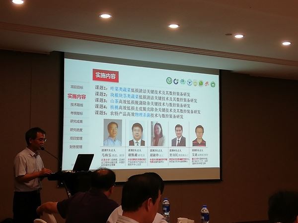 會上,江蘇大學(xué)、農(nóng)業(yè)部南京農(nóng)業(yè)機械化研究所、中國農(nóng)業(yè)機械化科學(xué)研究院、陜西省農(nóng)業(yè)機械化研究所、浙江大學(xué)等5家項目課題承擔單位負責(zé)人分別就各自負責(zé)的課題1:葉菜類蔬菜低損清潔關(guān)鍵技術(shù)及其數(shù)控裝備研發(fā)、課題2:塊根塊莖類蔬菜低損清潔關(guān)鍵技術(shù)及其數(shù)控裝備研發(fā)、課題3:山茶高效低損脫蒲除雜關(guān)鍵技術(shù)及其數(shù)控裝備研發(fā)、課題4:核桃高效低損去皮脫殼除雜關(guān)鍵技術(shù)及其數(shù)控裝備研發(fā)、課題5:農(nóng)特產(chǎn)品高效物理殺菌技術(shù)與數(shù)控裝備研發(fā),匯報了研究內(nèi)容與實施方案。