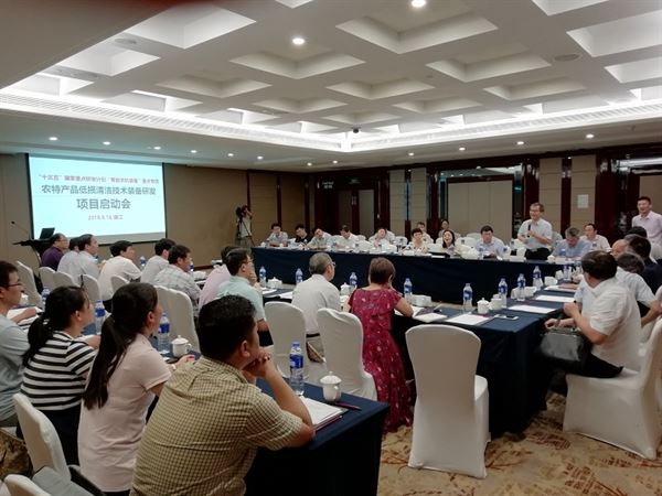 2018年8月16日上午,國家重點研發(fā)計劃“智能農(nóng)機裝備”重點專項“農(nóng)特產(chǎn)品低損清潔技術(shù)裝備研發(fā)”項目啟動會在江蘇鎮(zhèn)江召開,陜西科技控股集團陜西省農(nóng)業(yè)機械研究所作為項目課題四“核桃高效低損去皮脫殼除雜關(guān)鍵技術(shù)及其數(shù)控裝備研發(fā)”的負責(zé)單位參加了此次會議。會議由科技部中國農(nóng)村技術(shù)開發(fā)中心項目專員柏雨岑、項目流動專員童俊華副教授主持,江蘇大學(xué)校長顏曉紅,江蘇省科技廳農(nóng)村處調(diào)研員顧俊,鎮(zhèn)江市科技局副局長楊國祥、農(nóng)村科技處處長趙雙福等領(lǐng)導(dǎo),以及山東理工大學(xué)副校長易維明教授、上海交通大學(xué)劉成良教授、北京國嘉瑞會計師事務(wù)所所長徐勝懷高級會計師、四川省食品發(fā)酵工業(yè)研究設(shè)計院院長陳功研究員、農(nóng)業(yè)部南京農(nóng)業(yè)機械化研究所黨委書記胡志超研究員、中國農(nóng)業(yè)科學(xué)院農(nóng)產(chǎn)品加工研究所畢金峰研究員、浙江省農(nóng)業(yè)科學(xué)院食品科學(xué)研究所郜海燕研究員、江南大學(xué)機械工程學(xué)院院長盧立新教授、浙江理工大學(xué)科研院常務(wù)副院長武傳宇教授、中國農(nóng)業(yè)大學(xué)工學(xué)院彭彥昆教授等國家科技部專家組成員出席,項目首席專家、各課題負責(zé)人及項目組主要成員等參加。