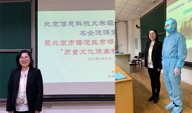 4月21日,公司走進北京信息科技大學經濟管理學院,參與“名企進課堂”暨北京市海淀區市場監督管理局“質量文化進高校”活動,為莘莘學子帶來了一場別開生面的質量管理課。作為質量標桿企業,本次走進高校旨在傳播質量管理文化,傳授質量管理知識,傳承質量管理理念。北大維信質量保證部張敏經理在講解中穿插提問互動,場景演示等環節,從企業介紹、質量管理的發展歷程、藥品質量管理的內容和方法三個方面進行了授課。課程內容生動,現場氣氛活躍,課后學生們紛紛表示受益良多,院方也對北大維信公司的此次支持深表謝意。