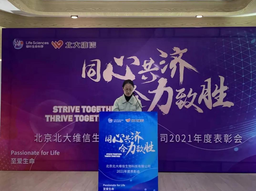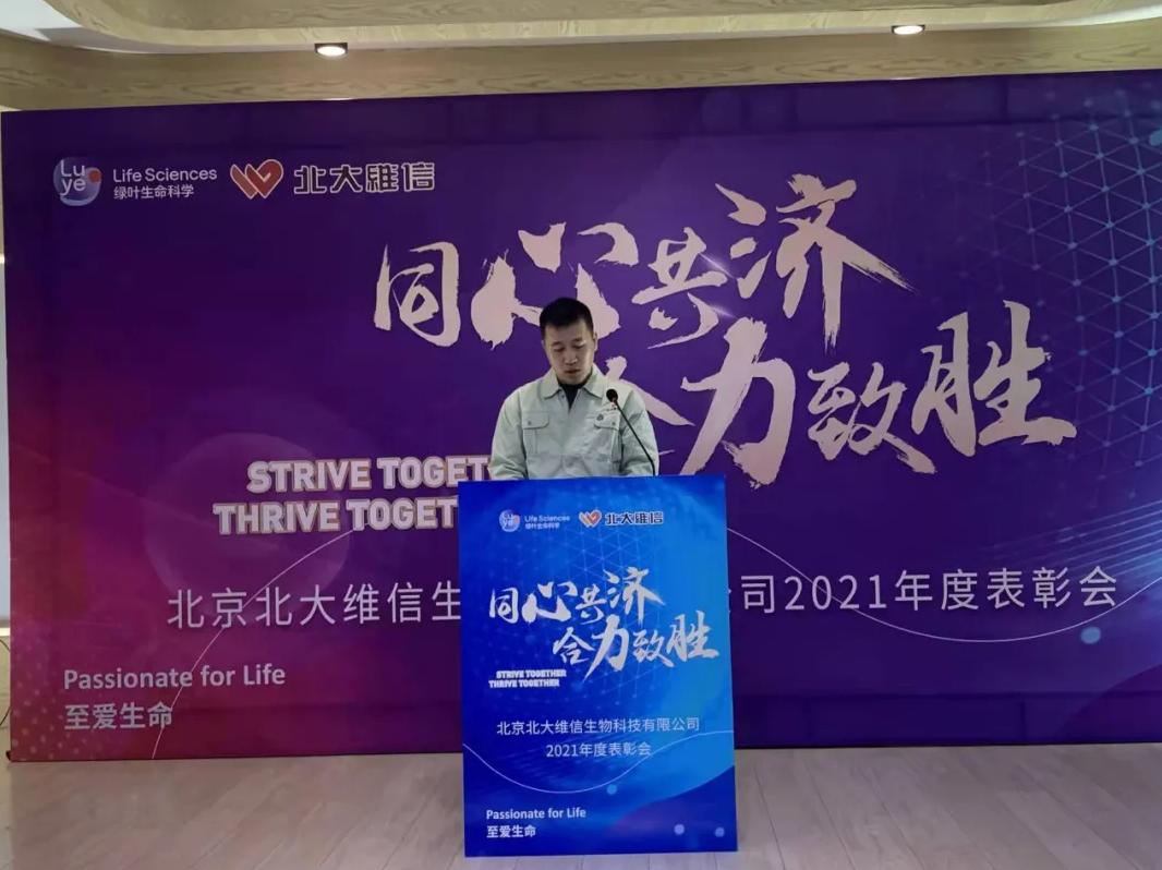 薛總對北大維信在2021年取得的生產(chǎn)經(jīng)營上的突破表示祝賀,肯定公司全體員工的堅守和付出。同時薛總也向公司全體員工介紹了綠葉生命科學集團在2021年取得的重要成就和未來的規(guī)劃,鼓舞北大維信全體員工在新的一年取得新的突破,并向公司全體員工致以虎年祝福。